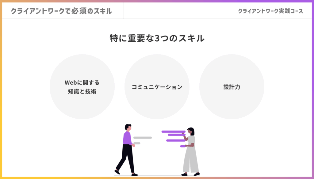 クライアントワークを始めるにあたって、いきなり実践に入るのではなく、まずはその土台となるスキルをしっかりと身につけておくことがとても重要です。