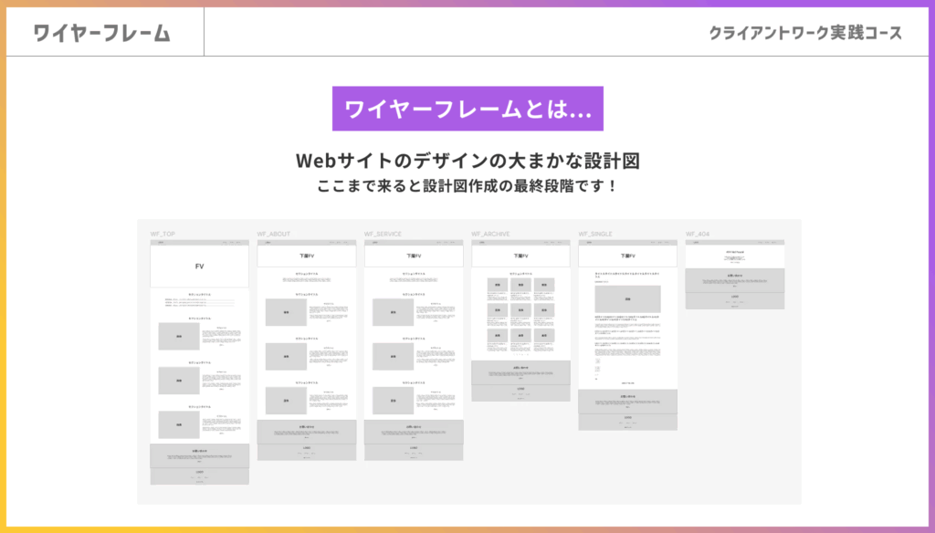 ワイヤーフレームは設計図作成の最終段階となる、Webサイトのデザインの大まかなレイアウト図です!